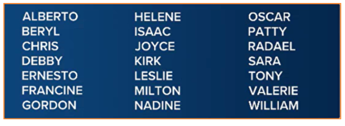 Nombres de las Tormentas Tropicales 2024