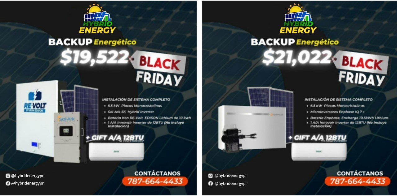 El Black Friday está aquí ofreciéndote una tremenda oferta, Sistema Energético con batería de backup … Para que por fin puedes eliminar el pago y los apagones de LUMA y AEE por siempre.